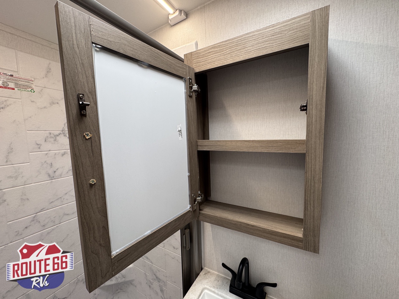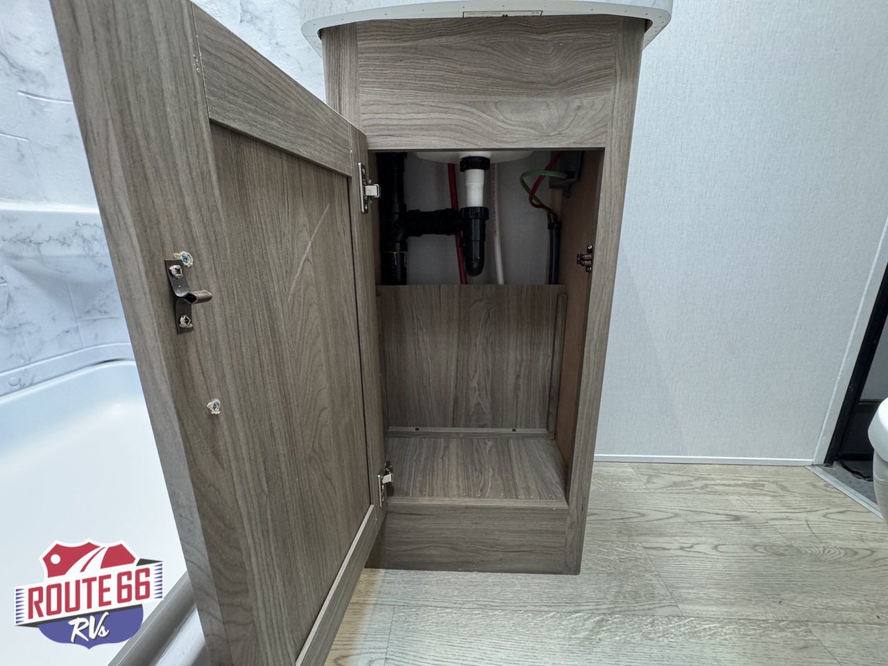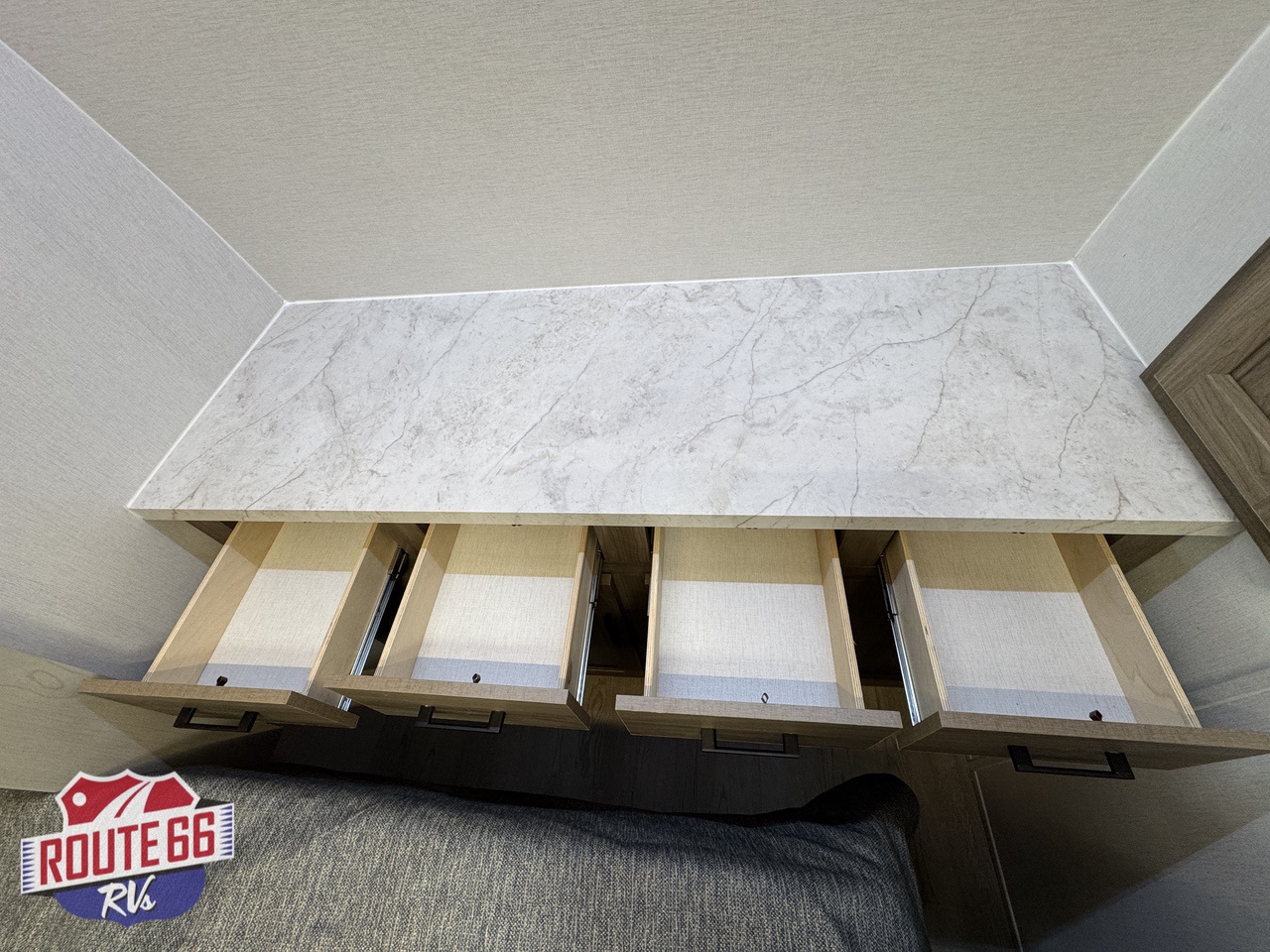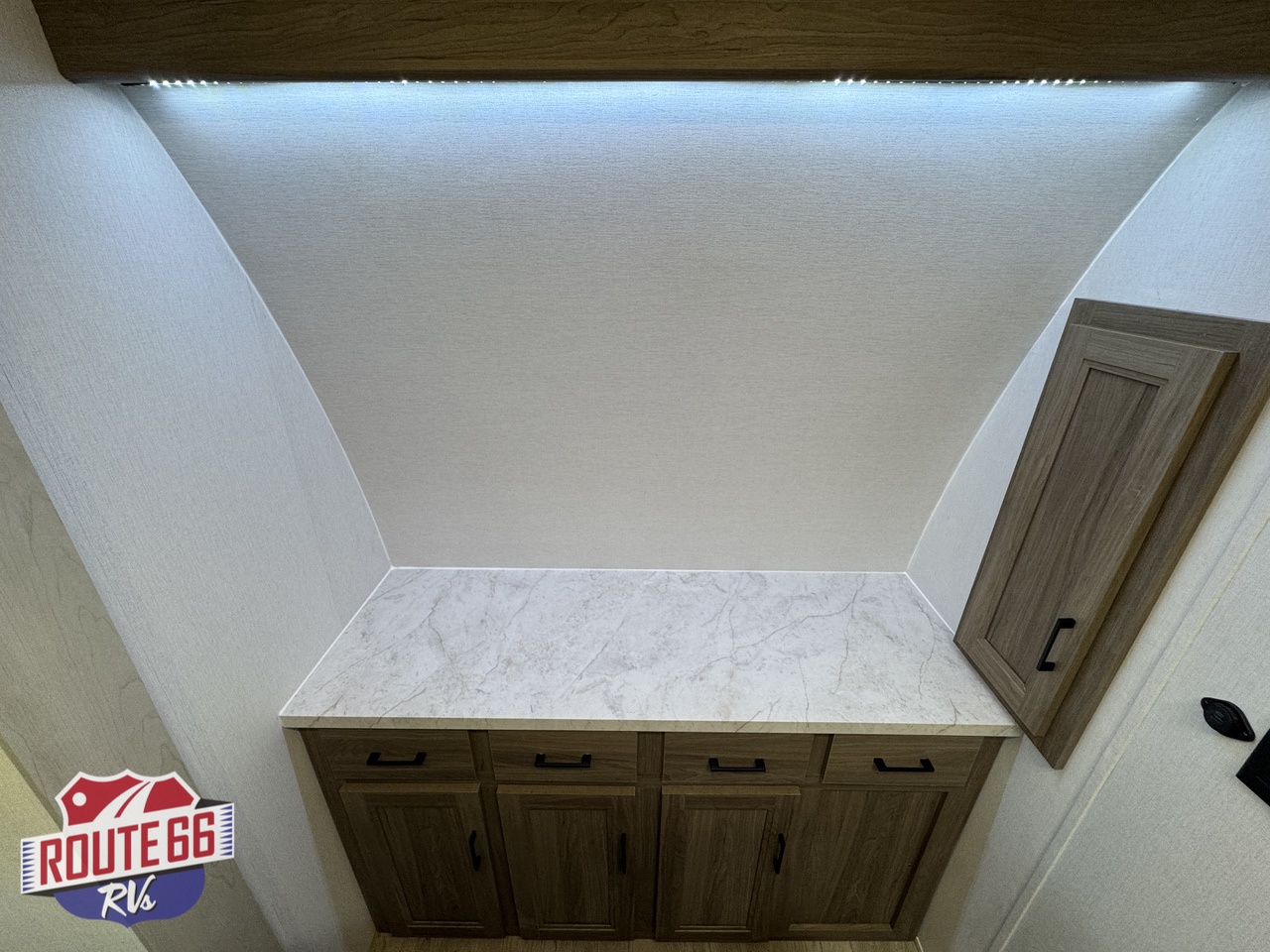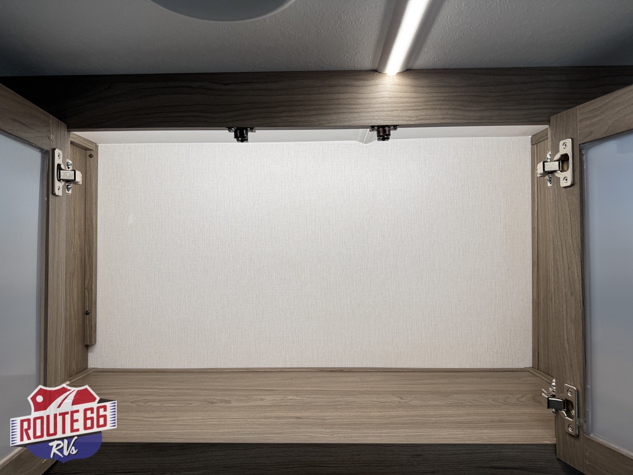 Storage is abundant throughout: overhead cabinets, pantry space, and hidden compartments keep your gear organized and out of the way.