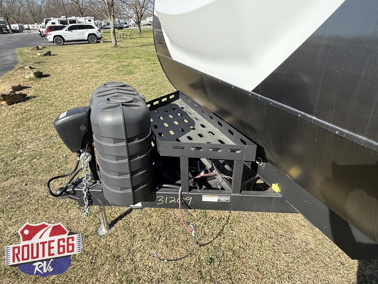 Outside, you’ll find a power awning with LED lighting, exterior speakers, a spray-off port, and massive storage bays. The 98-gallon fresh-water tank, 70-gallon gray tank, and 35-gallon black tank make this rig perfect for off-grid weekends.