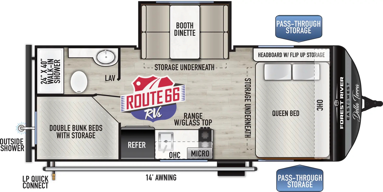 Durable construction and East to West’s attention to detail ensure that the Della Terra 191BH is ready for weekends away or extended road trips, delivering comfort, convenience, and style for your family adventures.