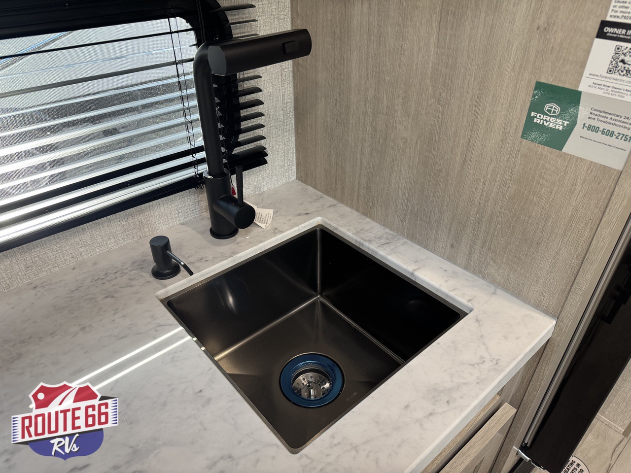 The fully equipped kitchen features modern appliances and practical storage, while the main living area includes a convertible dinette perfect for meals or extra sleeping space. Its lightweight design makes towing easy, and the efficient floorplan maximizes every inch of space.